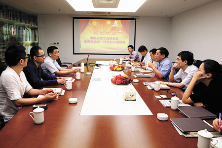 戎巨川董事长首先向王会长一行介绍了博洋多品牌、多产业发展的状况,就集团主营的纺织板块、服装板块和产业板块做了简报。戎董介绍说,博洋各品牌总体发展情况良好,集团也适时的做好品牌升级和产业调整。前两年,棉花价格带来的纺织成本增加,一度给企业带来压力。在国家宏观政策引导下,企业通过自身调整,日子已经好过多了。近期,博洋各品牌规模、利润各项指标都呈现良好势头,预计今年业绩与利润都将保持高速增长。戎董着重向客人介绍了博洋电子商务的发展和博洋家纺、唐狮休闲装。对于客人提出的相关问题,戎董表示,博洋集团将在2015年达成销售规模300亿元,并将品牌的落脚点放在原创设计和供应链管理。